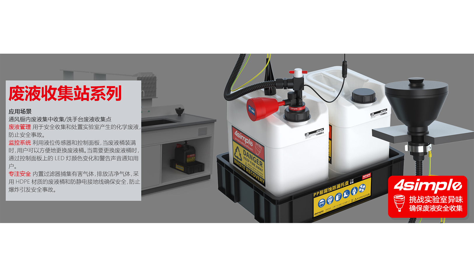 這套裝置合理利用通風(fēng)柜的臺(tái)面,釋放臺(tái)面的空間,在不影響氣流的情況下,完成廢液的傾倒,收集一系列操作,還通風(fēng)柜一個(gè)干凈、整潔、安全的使用環(huán)境。